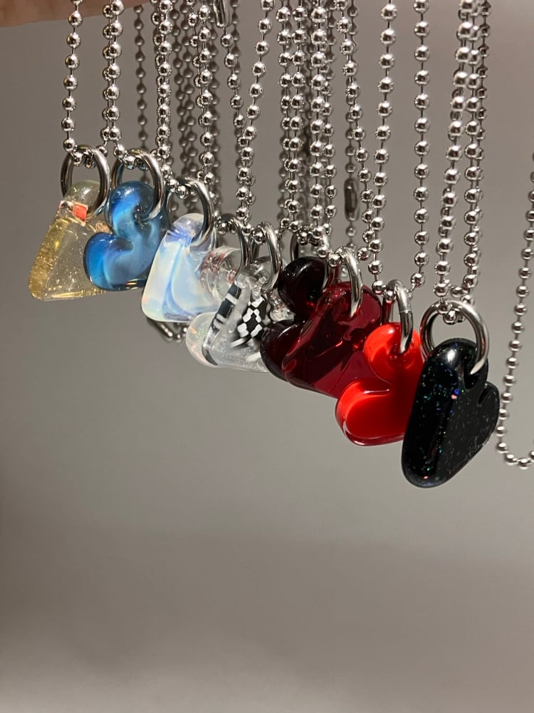 borosilicate glass heart pendant. comes with stainless steel jump ring and 24" ball chain (can be trimmed shorter)